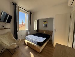 Il se compose d'une entrée donnant à gauche sur un séjour salle à manger, une chambre, en face de l'entrée, une cuisine, séparée équipée. À droite de l'entrée, la partie nuit comprend une salle d'eau, une deuxième chambre et un WC séparé. Climatisé et refait à neuf. L'appartement est idéal pour un jeune couple ou une colocation grâce à ses espaces nuit séparées.