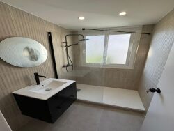 La cuisine a également bénéficié d'une rénovation complète : l'équipement est neuf, avec une plaque de cuisson, une hotte tout juste installés.