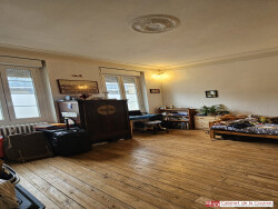 Situé au 1er étage, il se compose d'un séjour avec des prestations anciennes, d'une cuisine indépendante, de deux chambres, d'une salle de bain et d'un WC séparé.