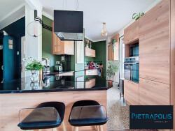 Il comprend : une entrée avec rangements, une grande pièce de vie lumineuse avec cuisine ouverte entièrement équipée (fait par un artisan menuisier), deux grandes chambres, dont l'une dispose d'un espace dressing et d'une salle d'eau avec WC. Enfin, un grenier réaménagé en bureau, idéal pour le télétravail ou un espace détente.