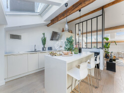 Très bien équipé l'appartement dispose d'une climatisation réversible que vous pourrez contrôler à votre convenance pour alimenter les espaces de vie et/ou les chambres individuellement. Les fenêtres de toit sont également équipées de de stores électriques et pour le confort de tous. De nombreux rangements sur mesures ainsi qu'un espace buanderie vous permettent d'accueillir de quoi stocker ainsi que les machines à laver.
