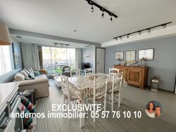 Andernos, en EXCLUSIVITE : Superbe appartement de type T4 de 82m2, avec terrasse et parking. Dans une petite copropriété proche du centre, il offre: une entrée, un vaste et lumineux séjour qui s'ouvre sur une grande terrasse sans vis à vis, exposée plein Sud. Cuisine aménagée et équipée. 3 chambres, 2 salles d'eau et 2 WC. Parking privé. Très belles prestations et beaux volumes.