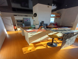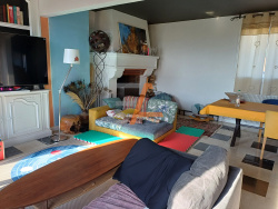 Secteur haut de Jacquard T4/5 au 6ième et dernier étage avec 64m2 de balcon filant et garage privatif. Venez découvrir cet appartement traversant lumineux avec une vue dégagée sur les toits stéphanois.Cet appartement est aménagé avec des matériaux de qualité (marbre au sol dans la cuisine, salle d'eau) , plafonds tendus, parquet en bambou et climatisation.). Il se compose de 3 chambres dont 2 spacieuses ( possibilité de transformer la buanderie en 4ième chambre si besoin);Vous pourrez apprécier son salon /salle à manger avec la cheminée ( qui fonctionne). Une ambiance cosy sans vis à vis... Une salle d'eau chic marbre douche avec jets.. et un wc séparé. Une deuxième entrée est présente peut convenir pour une activité libérale. Double vitrage, chauffage collectif au gaz avec répartiteur. Cette présente annonce a été rédigée sous la responsabilité éditoriale de l'agent commercial de votre secteur, régulièrement immatriculé au RSAC de SAINT ETEINNE ou du PUY EN VELAY (plus d'informtion sur le site d'EN APARTÉ), agissant pour le compte de la SARL EN APARTÉ, Agence Immobilière, 23 Place Chavanelle 42000 SAINT ETIENNE, RCS SAINT ETIENNE no 5013843300032, Carte professionnelle T no CPI 42022019000039321 délivrée par la CCI LYON METROPOLE SAINT-ETIENNE ROANNE, portant la mention ''Transactions sur immeubles et fonds de commerce'', sans détention de fonds. Les informations sur les risques auxquels ce bien est exposé sont disponibles sur le site Géorisques : www. georisques. gouv. fr