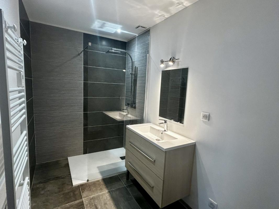Situé au RDC, il se compose d'une entrée, cuisine équipée (four, plaques, hotte), séjour/salle à manger, trois chambres avec placard, sde et wc séparés.