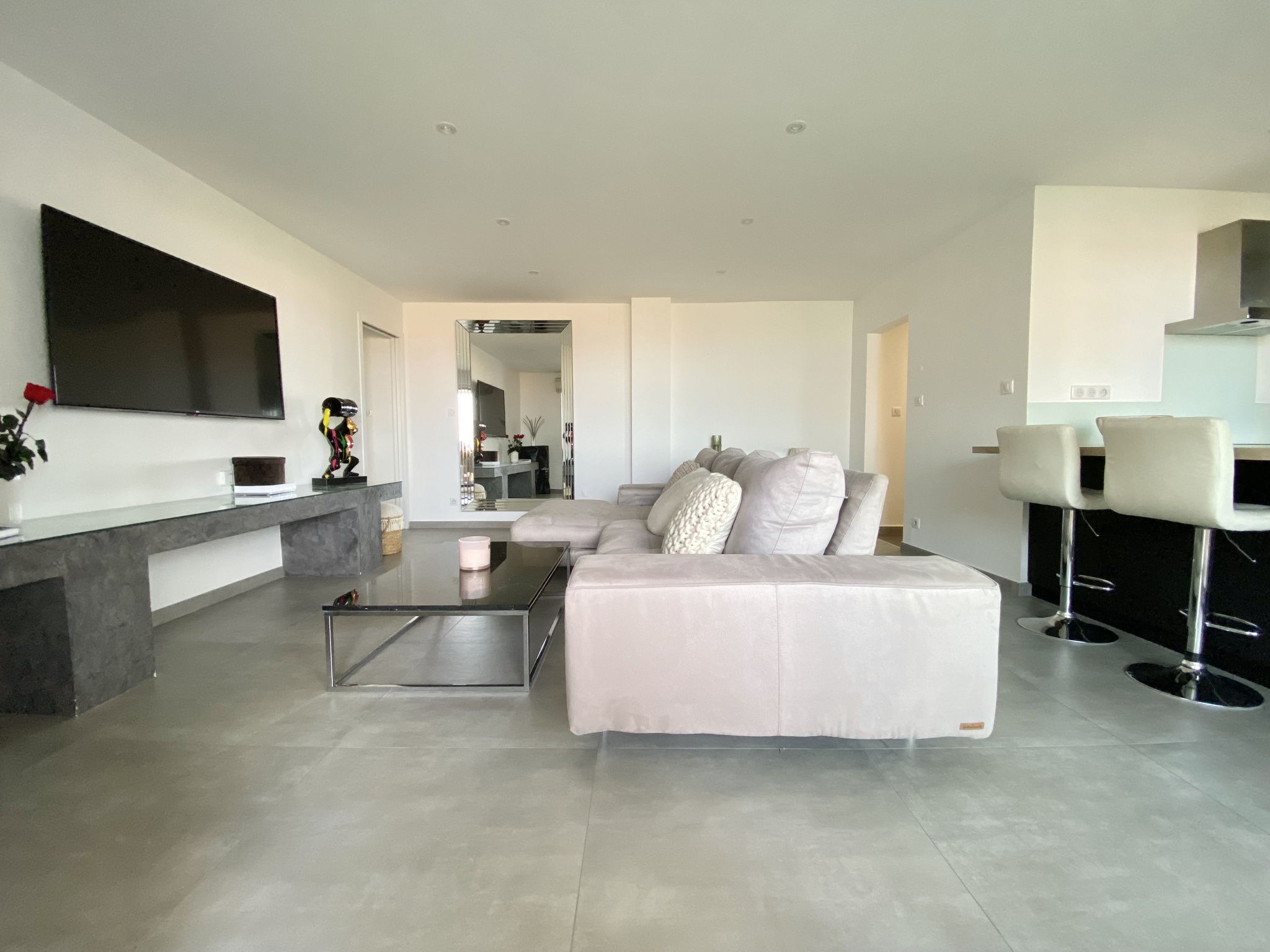 Ce grand extérieur, rare pour un appartement, permet de créer plusieurs espaces distincts : salon d'extérieur, coin repas, zone de détente ou espace bains de soleil, tout en profitant d'un panorama ouvert tout au long de l'année.