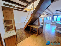L'entrée de l'appartement se fait au 1er étage, comprenant un sas d'entrée, une cuisine entièrement équipée ouverte sur un vaste séjour, une salle de bains avec douche et baignoire, un WC séparé, une grande buanderie/cellier ainsi qu'une chambre.