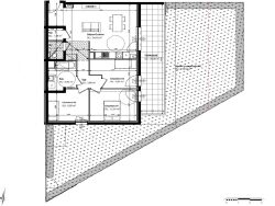 T4 en rez de jardin avec séjour / cuisine de 34,03m2, 3 chambres, une salle d'eau, une terasse de 20,68m2 et un jardin de 115,32m2.