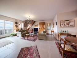 EXCLUSIVITE... Rare à la vente, dans une résidence de standing avec piscine, un duplex au 3ème et dernier étage avec ascenseur de 112m2 loi Carrez et 144m2 au sol. Au RDC, entrée avec placard, salon et salle à manger de 43m2 donnant sur une belle terrasse plein Sud de 23m2 avec vue sur tout le bassin annécien et le lac, cuisine semi-séparée équipée, 2 chambres, une salle de bains et un wc séparé. A l'étage une salle de bains avec douche et baignoire, 2 chambres dont une avec un dressing. En annexes, un parking de copropriété avec barrière, une cave et un garage inclus.