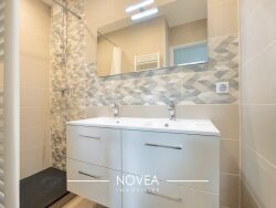 En poussant la porte de l'appartement, vous accédez à un hall d'entrée qui dessert sur votre droite la cuisine équipée ainsi qu'une buanderie, et sur votre gauche, une belle salle de douche. Face à vous, vous arriverez dans le salon / salle à manger donnent sur un petit balcon orienté Ouest.