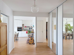 IMMO PASSION vous présente ce beau T5 traversant de 101.18 m2 carrez. Situé au 9e étage d'une copropriété des années 80, avec 2 grands ascenseurs, cet appartement bien exposé offre un cadre agréable et paisible. Idéalement situé dans une grande zone piétonne, dominant le parc Jean Monnet, à proximité du parc de la Tête d'Or, à une minute à pied d'un arrêt de tramway (T1 et T4) et 10 minutes du métro, proche des écoles, des commerces, d'un marché, de la médiathèque et du campus universitaire. Il propose un agencement confortable avec une grande pièce de vie (33 m2) - parfaite pour les temps de convivialité. Baignée de lumière, aux larges baies vitrées offrant une vue imprenable sur la colline de Fourvière et les monts du Lyonnais, avec cuisine intégrée toute équipée, en exellent état. Il dispose de trois chambres (12.8 m2, 10.3 m2, 13m2), dont une avec douche privative et point d'eau. Possibilité d'une quatrième chambre actuellement aménagée en bureau, idéal pour le télétravail. Une des chambres est entièrement insonoriséee, un atout rare pour les passions musicales. Salle de bain fonctionnelle, avec baignoire, double vasque et grands placards. Le bien dispose d'un garage fermé de 14.12 m2 en sous-sol, sécurisé (avec possibilité d'acquérir une place de stationnement supplémentaire en sous-sol fermé), d'une cave saine en sous-sol fermé, et d'accès à deux locaux à vélos. Porte blindée, résidence sécurisée avec gardien. Pas de gros travaux votés récemment. Pour tout contact et informations : Evelyne SIMONETTI 06.81.70.34.97. esimmopassion@gmail.com