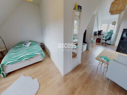 Le 1er étage accueille quant à lui une belle chambre de 50m2, un dégagement ainsi que deux autres chambres dont une avec penderie et accès sur un balcon. Une salle d'eau avec douche à l'italienne et wc complète ce niveau. Toutes les chambres sont également dotées d'un parquet massif d'origine.