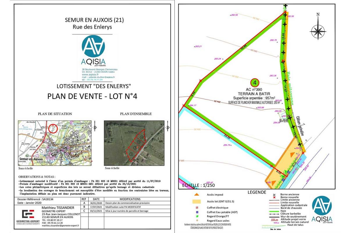 Terrain à bâtir de 800 m² proche des écoles et des commerces situé Chemin des Enlerys à Semur-en-Auxois, ville historique de Bourgogne avec ses tours et ses remparts médiévaux.