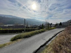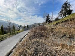 Ce terrain en pente est vendu partiellement terrassé et viabilisé.