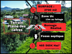 MAXImmo vous propose ce magnifique terrain constructible de plus de 3700 m² environ, situé en zone UC à la Plaine des Cafres (Le Tampon), offrant un potentiel exceptionnel pour une promotion immobilière.
