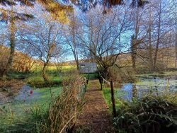 A la campagne, ce terrain de loisirs d'une surface totale de 1370 m2 comprend un étang (conforme) avec un abri de jardin. Etang alimenté par une source. Terrain non constructible, arboré et clos sur une partie.