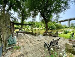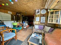 Dépendance d'environ 25m2 avec poêle à bois et terrasse sur dalle béton.