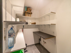 Elle se compose d'une entrée avec placard, d'une pièce à vivre de 43 m2 comprenant une cuisine ouverte avec un îlot central et un salon/séjour spacieux et lumineux, doté d'une baie vitrée vers la terrasse et d'un poêle à bois. Un cellier complète cet espace.