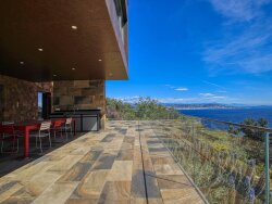 Villa moderne neuve totalisant 350 m2 environ sur un terrain bénéficiant d'une vue mer remarquable sur la baie de Cannes et les Îles de Lérins, et offrant également un ensoleillement maximal. Idéale maison familiale de vacances, composée à l'étage d'un grand séjour, cuisine ouverte, arrière-cuisine, buanderie et master bedroom. En rez-de-jardin : piscine, cuisine d'été, 5 chambres et appartement indépendant. Grand garage en rez-de-chaussée. À 5 minutes des plages et 20 minutes de la Croisette.