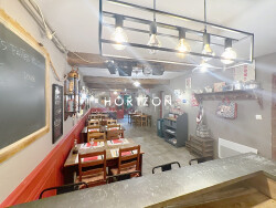 D'une grande pièce de réception, avec partie banque, bar, cuisine entièrement équipée avec plonge, four à bois, ainsi qu'une réserve complète l'espace cuisine, toilettes, terrasse.