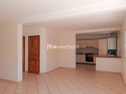 Au rez-de-chaussée : Une entrée avec placard ; Un séjour/salon donnant sur une terrasse exposé SUD ; Une cuisine semi équipée ouverte sur un séjour/salon ; Une terrasse avec jardinet ; WC séparé ;