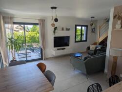 BAISSE DE PRIX ! Ne rater pas l'occasion de vous offrir cette belle villa de 138m2 habitables sur 1129m2 de terrain, sans vis à vis, belle vue sur les montagnes, à 2 minutes à pied du lac et des commerces de proximité ! Cette maison est à découvrir sans tarder ! En rez-de-chaussée laissez vous saisir par un espace ouvert et lumineux de plus de 50m2 dont une entrée de 10.74m2, une cuisine américaine aménagée et équipée de 10.12m2 et un salon - salle à manger avec poêle à bois de 29.69m2. Vous pourrez également profiter d'un w.-c., d'une salle d'eau, et d'une chambre de 15.15m2. Le tout ouvert sur le jardin avec vue sur la piscine et le jacuzzi. A l'étage, un pallier de 6.96m2 dessert trois belles chambres de 15.13m2, 16.90m2 et 12.93m2 vous disposez également d'un bureau de 5.47m2, d'une salle de bain de 8.90m2 et d'un w.-c. séparé. En annexe, un garage de 20.58 m2 et une buanderie de 5.97 m2 avec un accès direct au rez-de-chaussée de la maison. Un joli carport vient compléter ce bien . Les risques auquel ce bien est exposé se trouve sur https://www.georisques.gouv.fr/