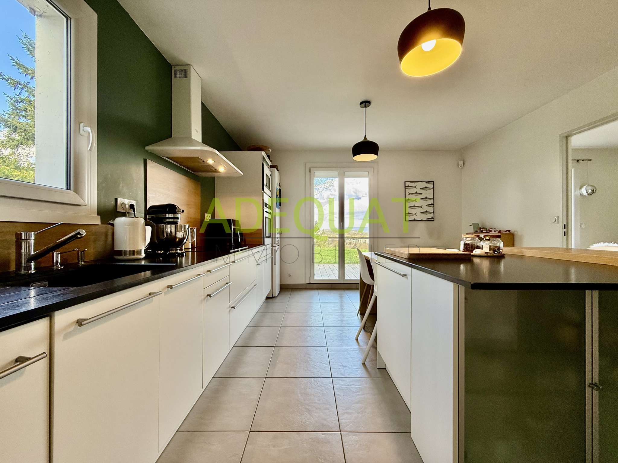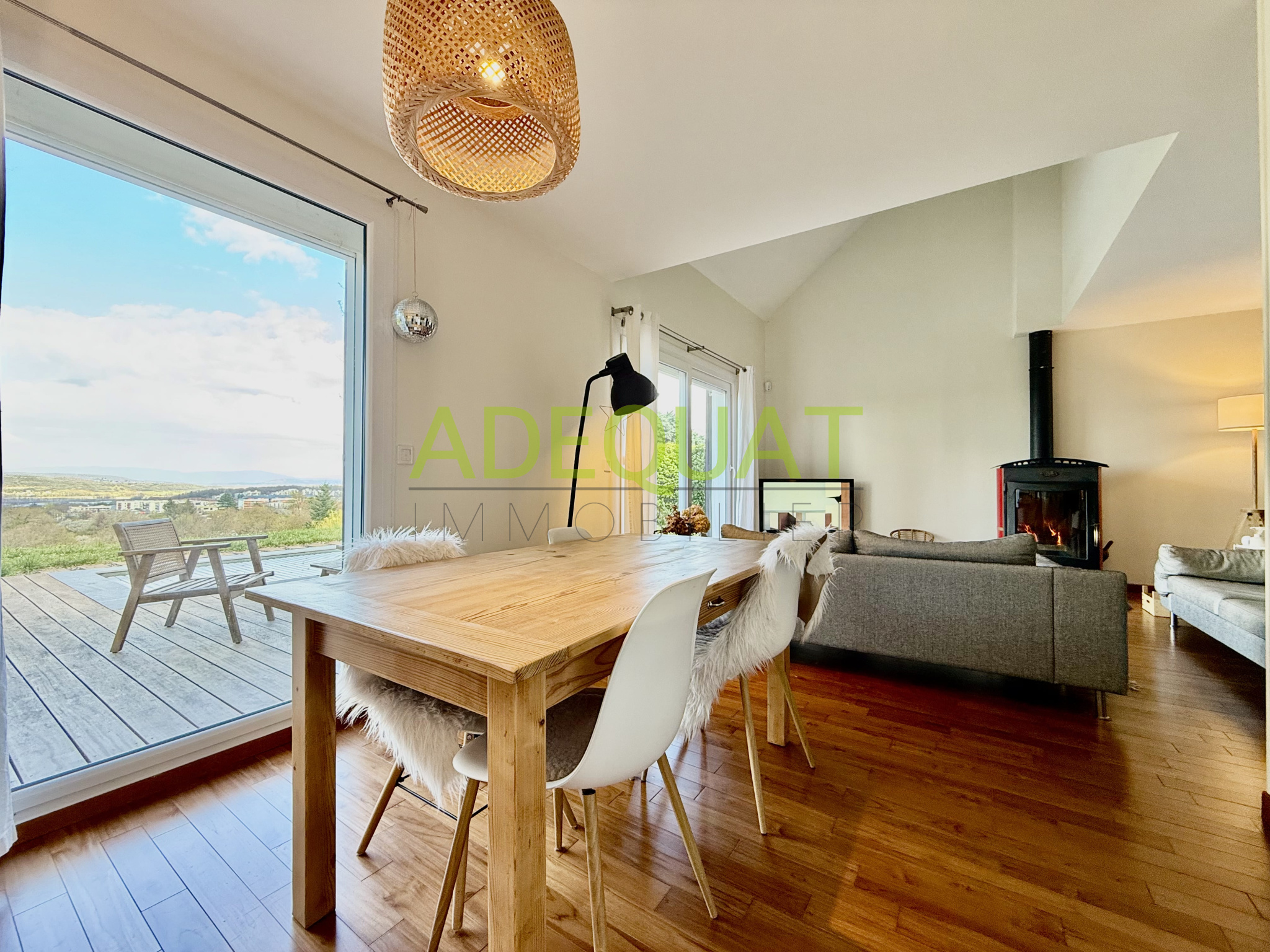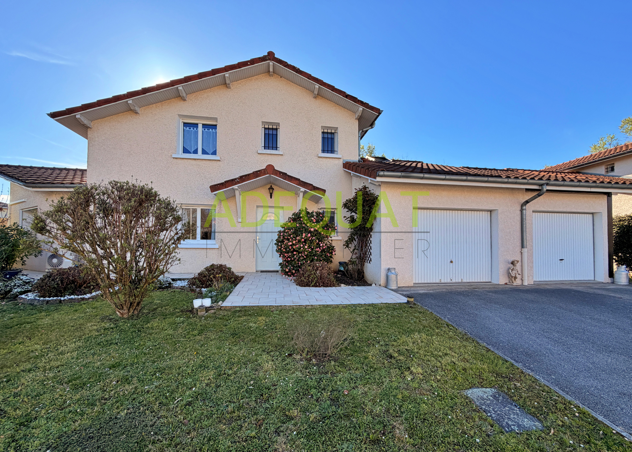 TIGNIEU-JAMEYZIEU, Au coeur de Tignieu village, dans un endroit très prisé, au calme et à proximité des écoles et commerces, Découvrez cette superbe villa moderne répondant au norme RE 2020, située hors lotissement, en fond d'impasse et non mitoyenne.. S'inscrivant au coeur d'une architecture contemporaine. Développant une surface de 140m2 habitables, avec toiture végétalisée, Elle se compose d'une vaste et lumineuse pièce de vie de plus de 60m2, une suite parentale avec SDO, 3 chambres, cellier, SDB, et WC, ainsi qu'une grande terrasse de 37 m2. Garage d'environ 30m2. Sur une parcelle de terrain de 705m2 . Exposée Sud et piscinable. Matériaux et finitions de qualité. Chauffage au sol par pompe à chaleur, carrelage 90 X90, baies aluminium, garde corps aluminium et soubassement vitré... Pour plus de renseignement nous consulter,