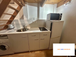 Emplacement privilégie. En rez de chaussé. Bail étudiant de novembre à juin. Séjour coin kitchenette équipée et meublé. A l'étage mezzanine. Placard. Salle d'eau douche et WC. Climatisation réversible. En très bon état. Terrasse commune. Etendoir.