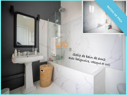 Cette maison saura vous séduire par son séjour de 48m2 doublement exposé avec mur en briquette apparente ainsi que par sa cuisine de 11,31m2 entièrement équipée. Au rez-de-chaussée, une chambre de 15m2 a été aménagé avec une salle d'eau et climatisation réversible. On retrouve également une entrée avec rangement, un cellier avec arrivée et évacuation d'eau et un WC.