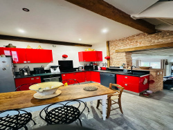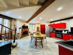 Idéalement située en plein coeur de L'Isle-Jourdain, cette authentique toulousaine séduit par son cachet préservé et sa rénovation de grande qualité. Dès l'entrée, vous serez conquis par ses magnifiques poutres apparentes, ses sols en terre cuite et ses superbes volumes. Le salon de 48 m2, spacieux et lumineux, constitue un véritable espace de réception, chaleureux et convivial. La maison offre 5 chambres, dont une suite en rez-de-chaussée, idéale pour une vie de plain-pied ou pour recevoir en toute indépendance. À l'extérieur, deux terrasses intimistes, sans vis-à-vis, permettent de profiter pleinement des beaux jours en toute tranquillité -- un privilège en hyper centre. Atout rare et précieux : 2 garages privatifs, un véritable luxe au coeur de la ville. Un bien de caractère, alliant authenticité, confort et emplacement premium. Bien rare sur le secteur.
