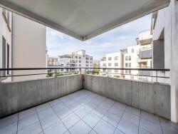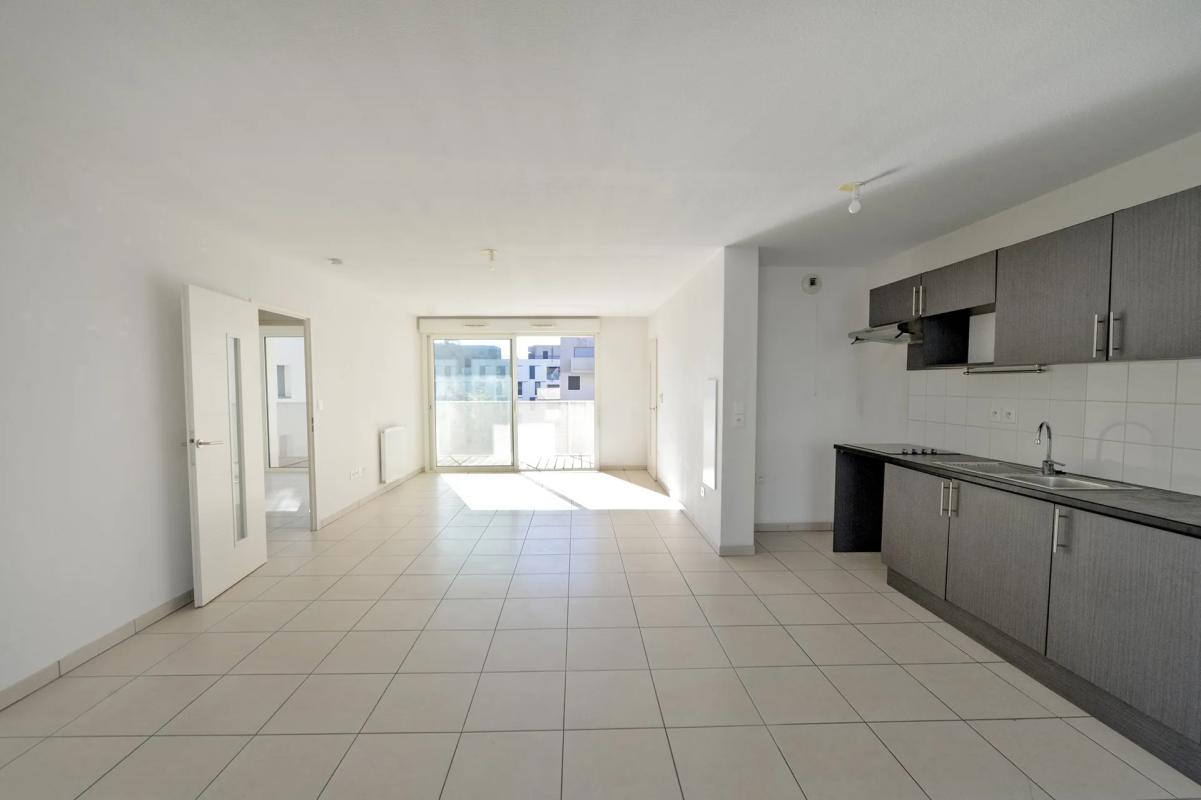 L'appartement se compose au premier niveau d'une entrée desservant un séjour lumineux ouvrant sur un balcon filant, offrant une vue dégagée sur les espaces verts environnants. La cuisine indépendante, fonctionnelle, dispose également d'un accès direct au balcon.