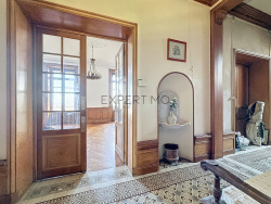 Au rez-de-chaussée, une entrée carrelée de superbes carreaux de ciment dessert un salon / salle à manger lumineux de 51 m2 avec parquet et cheminée de style néo-Renaissance, et accès direct à la terrasse, un petit salon TV, ainsi qu'une cuisine fonctionnelle. Vous trouverez également une salle de bains avec WC à cet étage. À l'étage, un palier spacieux mène à 4 grandes chambres de 14 à 26 m2, avec parquet et moquette, ainsi qu'à une salle de bains avec WC. Au second étage, 2 chambres supplémentaires de 12 et 23 m2 vous attendent, ainsi qu'une grande pièce de 30 m2 pouvant être utilisée comme salle de billard. Un grenier de 28 m2 complète cet étage, avec des combles non aménageables au-dessus. Le sous-sol offre un espace de 130 m2 avec chaufferie, garage, remise et atelier.