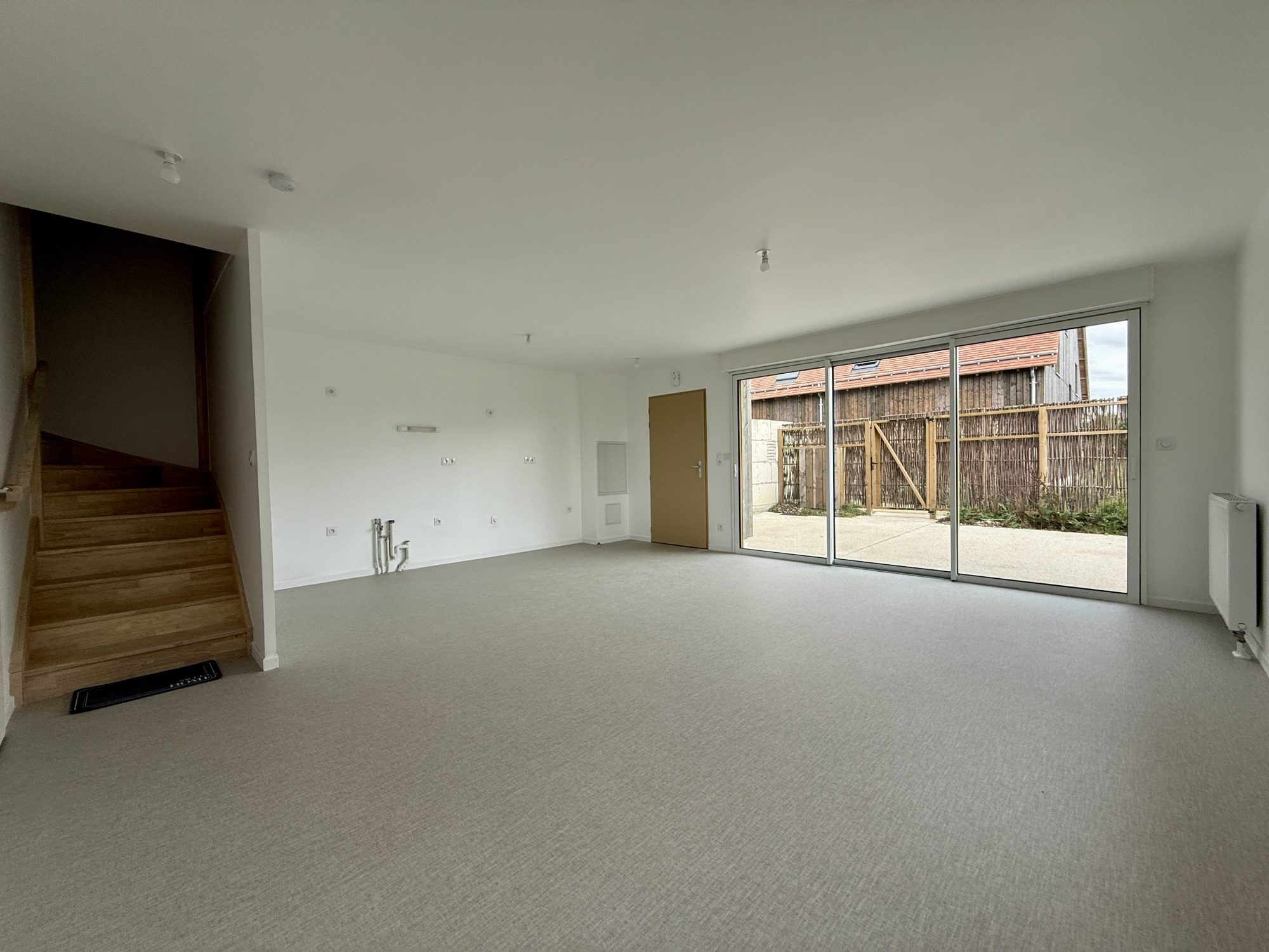 Au rez de chaussée, la pièce à vivre baignée de lumière s'ouvre sur une terrasse exposée sud-ouest.
