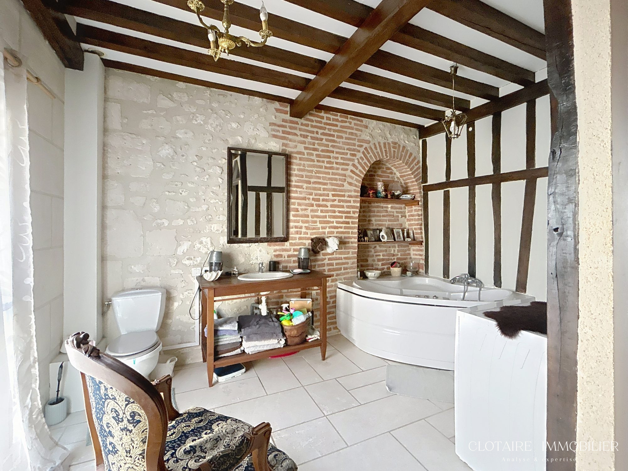 Elle se compose d'une entrée, une suite parentale avec salle d'eau, un bureau ou chambre, un séjour salon avec cheminée de 44 m², une cuisine indépendante, un WC indépendant et une véranda de 20 m²