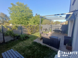 Pour les beaux jours, profiter d'une spacieuse terrasse sur plots de 15m2 avec pergola donnant sur un petit jardin.