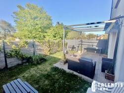 Pour les beaux jours, profiter d'une spacieuse terrasse sur plots de 15m2 avec pergola donnant sur un petit jardin.