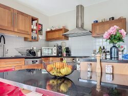 La grande cuisine équipée et conviviale donnant sur une seconde terrasse et sa piscine est entièrement équipée et bénéficie d'un espace repas. Un cellier donne également accès au double garage d'environ 36 m2.