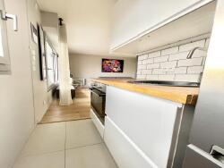Il dispose d'une entrée avec rangement et d'un espace machine à laver, d'une belle pièce de vie lumineuse avec ses grandes fenêtres orientées plein sud, d'un espace cuisine très bien pensé avec four, plaque de cuisine et rangements ainsi qu'une salle d'eau spacieuse avec WC intégré.