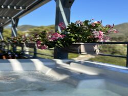 Une grande terrasse de 40 m², exposée sud-est, vous offre une belle vue dégagée sur la campagne.