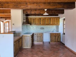 En campagne, bel appartement de type F6 situé au 1er étage d'un mas, surface habitable de 120 m2 avec terrasse de 20 m2. Au premier niveau, une pièce à vivre avec cuisine équipée, deux chambres, une salle de bain et un WC indépendant. A l'étage, un grand dégagement, trois chambres sous rampant et une salle d'eau avec WC. En rez-de-chaussée, une cave/buanderie. Deux places de stationnement. Chauffage central fuel, cumulus, double vitrage bois. Disponible au 5 janvier 2026. Loyer : 780 Caution : 780 Agence : 660 comprenant les visites, le montage du dossier, la rédaction du bail et les état des lieux d'entrée et de sortie. Contact uniquement par téléphone pour entretien.