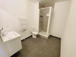 Il se compose : d'une vaste entrée avec des rangements, d'un séjour spacieux et lumineux ouvert sur une cuisine aménagée offrant l'accès à la terrasse, d'un dégagement vous menant au deux chambres, d'une salle de douche équipé d'un plan vasque et sèche serviette avec WC, et également d'un WC séparé.