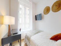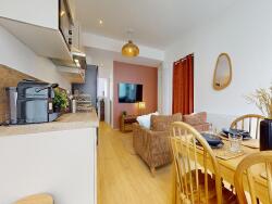 Situé 17 rue Rouget de L'Isle, à deux pas du tramway, de la Cité du Design, de l'École Télécom et de l'École d'Architecture, cet appartement de 71 m², entièrement refait à neuf et décoré avec goût, est disponible à la location