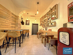 - Superficie intérieure : 57 m² - Terrasse ensoleillée : 25 m² - Bail commercial : 3/6/9 jusqu'en 2029 - Destination : Snack, fast-food, petite restauration - Loyer : 891 / mois