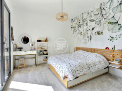 Au rez-de-chaussée : 1 grande entrée très spacieuse, 1 salon séjour attenant à une cuisine équipée, 1 chambre, 1 salle d'eau avec wc, 1 garage. A l'étage : 1 dégagement, 3 chambres toute équipé d'un dressing, 1 salle d'eau avec douche a l'italienne et un wc. A l'exterieur : 1 beau jardin très joliement arboré avec arosage automatique, Le bien dispose de plusieurs places de parking, un garage motorisé. Prestations :