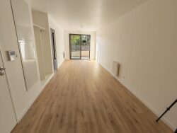 Grand T2bis au rez de chaussée de 56m2 avec jardin/terrasse 16m2 comprenant : - Grand séjour/entrée/cuisine 34m2 - chambre + dressing 15,8m2, salle d'eau douche à l'italienne, meuble vasque, sèche serviette, wc suspendu. - kitchenette (meubles haut/bas, plaques cuisson/hotte) Volets roulants électriques, parquet stratifié, menuiseries alu coulissantes.