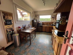 Il comprend un séjour, une cuisine séparée, une salle d'eau et 3 chambres, mais également un grenier, un garage, des dépendances et un grand garage séparé,
