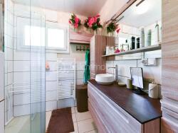 Le bien est composé au niveau supérieur de : une cuisine équipée de environ 10m2 avec arrière-cuisine et accès direct à l'extérieur, un salon / salle à manger de 33m2 avec accès au balcon de 13m2, le tout agrémenté d'une cheminée et d'une exposition Sud-Est avec store ban électrique. Possibilité d'enlever une cloison entre la cuisine et le salon pour avoir une grande pièce ouverte mesurant approximativement 50m2.