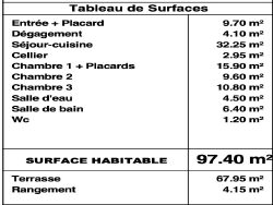 Superbe terrasse de 68m2 pour ce spacieux T4 de 97m2 : - Séjour triple expo - une suite parentale de 16m2 avec salle d'eau attenante et placards - deux chambres, salle de bains, rangement extérieur, deux wcs, cellier