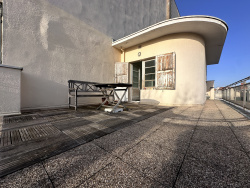 Vichy (03) - Face au Parc des Sources en hyper centre / Au sein d'1 immeuble historique conçu par l'architecte Félix Aublet en 1936, Appartement triplex de 115m2 avec ascenseur privatif, balcons en arrondi et terrasse en roof top. Entrée / Cuisine / Salon / 2 chambres / 1 salle de bain / 2 WC / 1 pièce à aménager donnant sur la terrasse. Simple vitrage / Chauffage gaz / IF : 1 735EUR. Pas de charges sauf assurance immeuble ( Syndic bénévole : 3 copropriétaires ) Pas de procédure en cours.