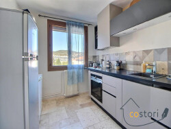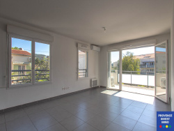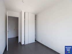 Au dernier étage d'une résidence récente de 2015, un Type 3 de 62 m2 avec terrasse surplombant sur un jardin collectif. Le séjour cuisine de 26 m2 est ouvert sur 2 côtés, et donne sur une terrase de presque 5 m2. Une entrée, un wc aux normes handicapés, une salle de bains de 4.38 m2. Avec 2 chambres de 13 m2 et 11 m2 dont une avec placard. Une climatisation dans le séjour. Converteurs électrique. L'eau chaude est collective. Une place en parking souterrain. A proximité de la ville et d'un petit commerce. Idéal pour un couple, une personne seule ou pour la retraite. Les charges de copropriétés dont de 120 EUR mensuel comprenant environ 11 euros d'eau chaude et froide. DPE C. La consommation d'énergie pour une consommation moyenne est de 433 EUR minimum et 721 EUR maximum. 82 lots d'habitations. Résidence fermée. Les informations sur les risques auxquels ce bien est exposé sont disponibles sur le site Géorisques : www.georisques.gouv.fr