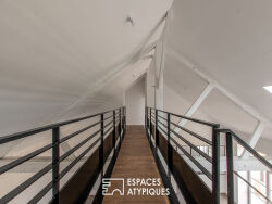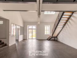 Niché au coeur du village labellisé « Petite Cité de Caractère » de Savennières, véritable joyau viticole de l'Anjou, cet ancien chai réhabilité en lofts se distingue par son caractère unique. Déployé sur deux niveaux, il offre des espaces de vie atypiques d'environ 185 m², idéaux pour les amateurs d'architecture contemporaine. Le tout s'inscrit dans un écrin verdoyant de 525 m² avec jardin. Immaculé dans un contraste élégant de blanc et de noir, ce lieu hors du commun séduit par ses volumes généreux, baignés de lumière et totalement modulables selon les envies et le mode de vie de ses futurs occupants. Dès l'entrée, l'espace s'ouvre sur un vaste hall avec dressing, toilettes et lingerie-chaufferie. Puis vient le coeur du loft : une pièce de vie époustouflante de plus de 75 m², où l'ancienne vocation du chai se devine encore à travers les lignes et la structure du bâtiment. Une cuisine indépendante, à aménager selon vos inspirations, se distingue par sa verrière en verre et métal, apportant un jeu subtil de transparence et de profondeur en lien avec l'espace principal. Sur ce même niveau, une suite parentale indépendante profite d'un accès direct à la terrasse et au jardin. Son espace nuit s'accompagne d'une salle d'eau élégante, équipée d'un double vasque, d'une douche à l'italienne et de toilettes privatives, garantissant un confort absolu. Une pièce attenante pourra être aménagée en bureau ou en dressing, selon les besoins. L'accès à l'étage s'effectue par un escalier à ossature métallique et marches en bois, qui s'intègre parfaitement dans le design industriel du lieu. Une passerelle aérienne, véritable signature architecturale, traverse l'espace et dessert deux chambres situées aux extrémités, mettant en valeur la charpente d'origine du chai. L'une des chambres bénéficie d'un dégagement avec une salle d'eau supplémentaire, équipée d'un double vasque, d'une douche à l'italienne et de toilettes. Chaque chambre est connectée à un espace polyvalent, pouvant faire office de bureau, salle de jeux ou chambre d'appoint, offrant ainsi une flexibilité maximale selon les besoins des futurs résidents. Ce bien d'exception comprend deux places de parking privatisées. Il se situe à seulement 8 minutes à pied de la gare TER de Savennières et à 9 minutes de la gare TGV d'Angers, permettant de rejoindre Paris ou Nantes en toute simplicité. A quelques pas des commerces du coeur de bourg et de son marché dominical, cette propriété bénéficie également d'un accès rapide à la métropole angevine, accessible en 22 minutes par la route. Classe Énergie : A / Classe Climat : A Montant moyen estimé des dépenses annuelles d'énergie pour un usage Standard, établi à partir des prix de l'énergie de l'année 2023 : entre 760 euros et 1110 euros par an. Contact: Philippe 06 07 60 57 50 E.I. Agent commercial 349 740 936 RSAC Angers Les honoraires sont à la charge du vendeur. Les informations sur les risques auxquels ce bien est exposé sont disponibles sur le site Géorisques : www.georisques.gouv.fr